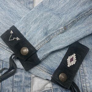 Vintage SFR Santa Fe Creation Denim Jacket with Suede & Aztec Patch