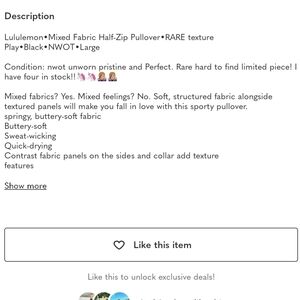 Lululemon•Mixed Fabric Half-Zip Pullover•RARE texture Play•Black•NWOT•Large