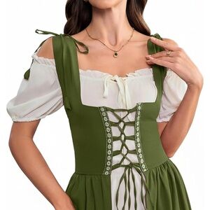 Renaissance costume/women’s medieval dress… made of soft polyester, breathable and light-weight. It's comfortable to wear. This medieval costume with chemise and overdress offers both comfort and softness.