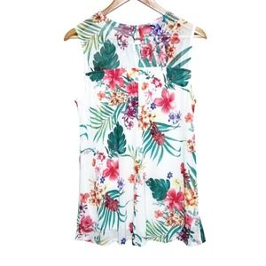 Keywords: NWT, APT 9, sleeveless top, floral print, tropical, sheer yoke, women's blouse, vacation wear, lightweight, summer top, resort wear, new with tags, feminine, bright print