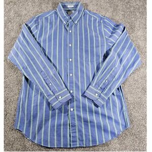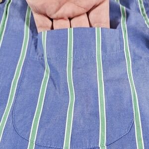 J Crew Secret Wash Classic Fit Blue,Green Stripe Button Down Shirt Men's Medium