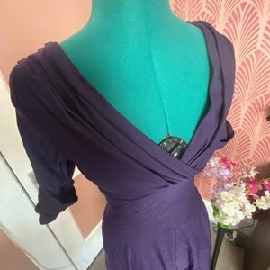 Elegant purple dress with a flattering V-neckline from the brand Unique Vintage. Features three-quarter sleeves and a flared skirt. Perfect for any occasion. The fabric only has a little bit of stretch, so please double check the UV size chart!