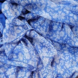 Zara Blue White Floral Ruffle Long Sleeve Short Romper Size S