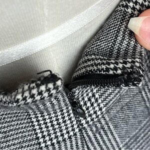 A beautifully tailored Banana Republic skirt from the Fall 2008 collection, crafted in luxurious wool twill suiting with a classic grey Glen plaid (Prince of Wales) pattern and subtle houndstooth detailing. A timeless, structured piece from Banana Republic’s higher-quality pre-2010 era, known for elevated fabrics and sharp tailoring.
