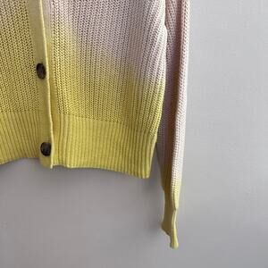 Roan + Ryan Knit Cardigan Sweater Yellow Cream Ombre Dip Dye Chunky Knit SMALL