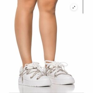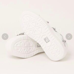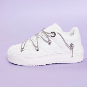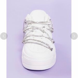 Stylish white sneakers featuring rhinestone accents. Perfect for casual wear. New. No box.