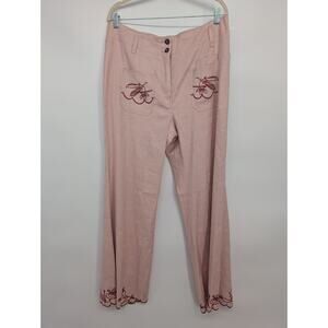 New with defects Maeve The Junie Embroidered High-Rise Flare Pants Size Petites 32P Pink #7C503