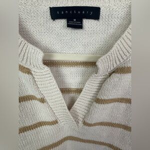 Sanctuary Chill Vibes Cotton Knit Cream And Tan Striped Sweater Size Medium