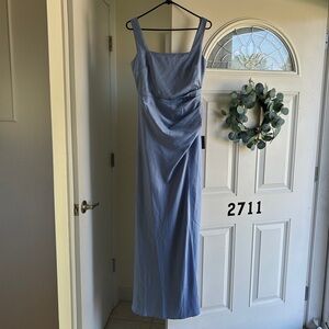 NWT Red Carpet Romance Light Blue Satin Square Neck Maxi Dress Size Small