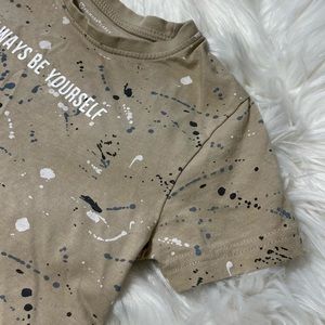 Primark Boy 4-5 Years Short Sleeve Shirt. Tan/ beige color with splatter detail throughout. Worn once or twice. Great Condition.