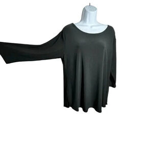 SYMPLI Size 12 Black scoop neck jersey boxy top 3/4 sleeves