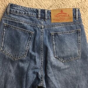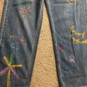 REALLY RARE STYLE AND PRINT/5 pocket style, button front fly, super cute with little white tank or tee and moto jacket, very distressed look/ great condition/ B