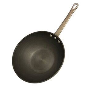 Commercial aluminum cookware wok pan. This durable wok features a classic design ideal for stir-frying or steaming. The riveted handle provides a secure grip. Perfect for home kitchens or professional culinary settings.