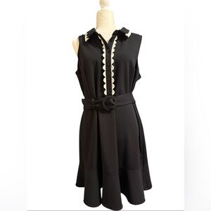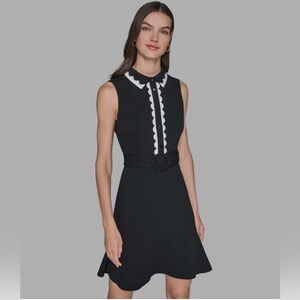 This elegant black and white Karl Lagerfeld dress is perfect for any occasion. The stylish belt accentuates the waist, adding a lovely touch.