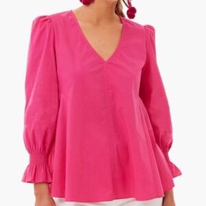 Tuckernuck Pomander Place Easton Blouse Pink Cotton Poplin Medium