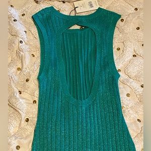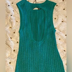 Elegant green maxi dress by Spell. Sleeveless design with side slit. Perfect for any occasion.