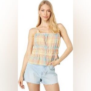 Madewell Seersucker Sophia Peplum Tank in Rainbow Gingham Check. Size L