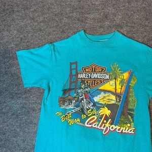 Keywords: Harley Davidson, graphic tee, biker shirt, California, road trip, vintage style, motorcycle apparel, summer shirt, travel, casual wear, iconic, mens fashion, outdoor adventure