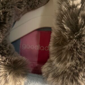 Stylish sky blue pea coat by Good Lad. Accented with charcoal faux fur on collar and cuffs. Perfect for chilly days.
