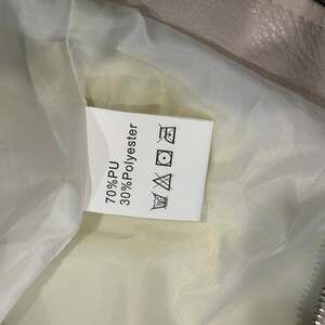 This stunning biker-style jacket features intricate floral embroidery on the front, back, and sleeves, complemented by edgy silver-tone stud detailing along the collar and seams. Crafted from 70% PU and 30% Polyester for a high-quality leather look with a durable finish.