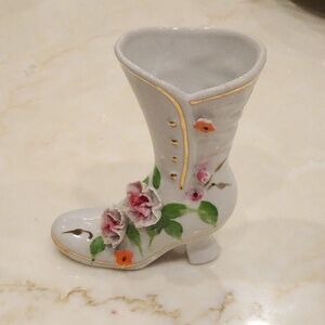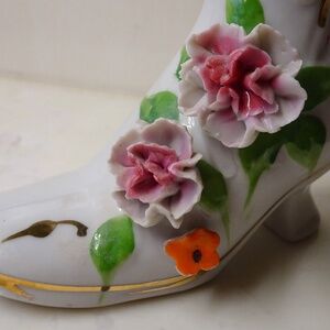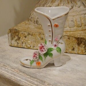 This decorative Royal Crown porcelain boot is vintage from the 1950s.