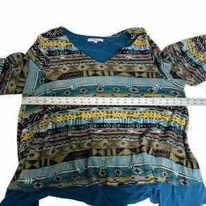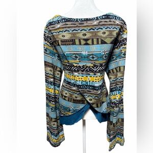 Catchfly Studio Tribal Print Split Back Long Sleeve Top - XXL