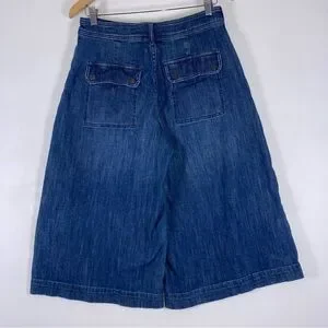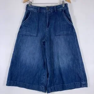Pilcro Anthropologie Wide Leg Crop Culotte Jeans Sz 27 Denim High Rise Pocket