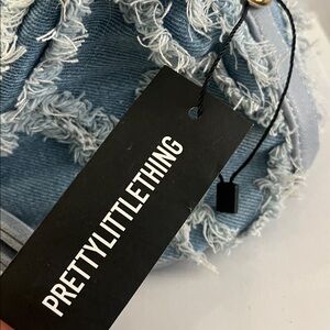PrettyLittleThing Distressed Denim Mini Bucket Bag NWT