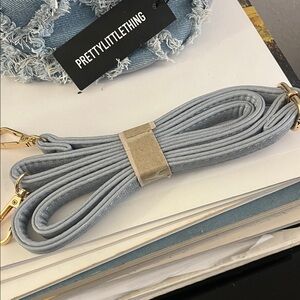Brand new with tags! Super cute distressed denim mini bucket bag from PrettyLittleThing. Perfect everyday bag for casual outfits, brunch, festivals, or Y2K-inspired looks.
