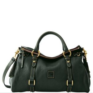 Chic satchel with gold accents. Durable leather. Ideal for daily use.