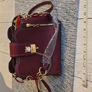 New Dark Red / Burgandy And Gold Tone Hardware Crossbody
