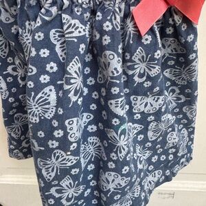 Adorable dress with lace top and floral skirt. Pink bow adds a cute touch. Ideal for casual outings.