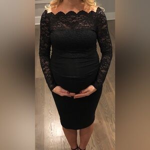 Maternity Black Bodycon with Longsleeve Lace Overlay Dress Size XS