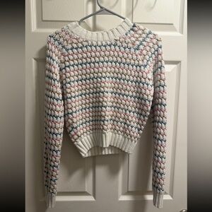 Feel the warmth of this popcorn-stitch sweater knit from a soft cotton blend with raglan sleeves and ribbed trim.