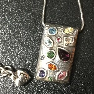Rare vintage Brighton silver pendant with multi colored crystals. Worn once then sat in my collection for the past 16 years never touched again. Like new condition one inch pendant with a 16 inch chain that can be worn to 18 inches if preferred. A beautiful and unique piece of Brighton history that is perfect for any collector to wear or resell. Includes original Brighton bag ๐๐ง๐ปโโ๏ธ๐ฆ๐ฟ๐น