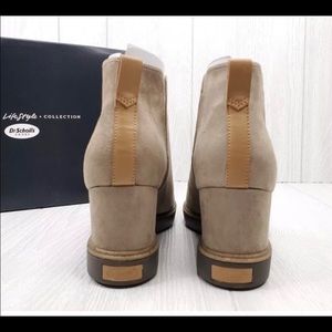 DR. SCHOLLS Womens Size M Brown suede Mid Stacked Wedge Booties. Condition brand new In the box 100% authentic