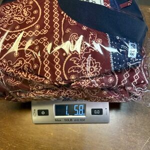 Keywords: Levi's, bomber jacket, quilted, bandana print, burgundy, navy, menswear, outerwear, zip up, casual, streetwear, fall fashion, winter wear, Retro inspired, Western Modern Style, Hip Hop, Quilted jacket, Statement Piece, patchwork