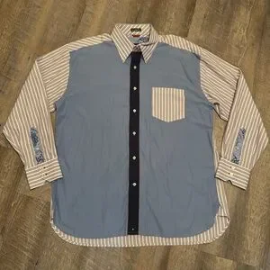 Tommy Hilfiger Patchwork Button Down Shirt XL 80s 2 Ply Fabric Striped Paisley
