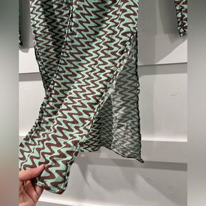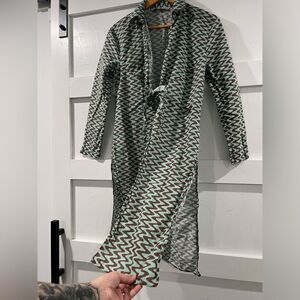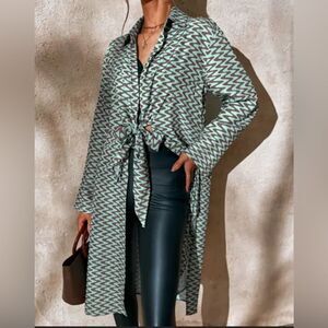Women's Green/Brown Lissie Chevron Open Front Tie Shirt