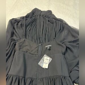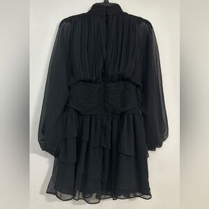 NWT Express Black Mock Neck Long Sleeve Pleated Waist Tiered Ruffle Mini Dress
