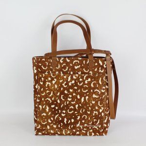 Madewell's Medium Transport Tote gets updated in genuine calf hair patterned in an animal print. What goes into it? Here it is by the numbers: two pieces of fine calf-hair leather are used for the body; two ways to carry: with the top handles or the detachable shoulder strap; one exterior pocket for those things you gotta grab fast; one interior side zip pocket to keep your keys, phone and wallet at the ready; and 24: the number of hours in a day that this bag looks cool.