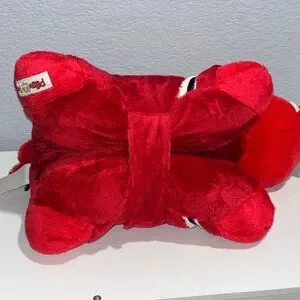 Vibrant red plush pillow pet. Soft and huggable. Ideal for all ages.