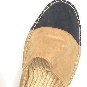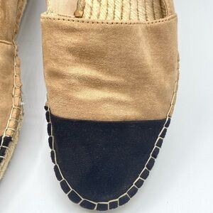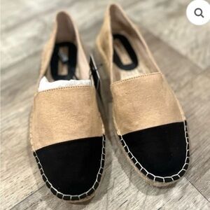 Chic espadrille slip-ons by Zara. Tan upper with black toe. Stylish and comfortable.