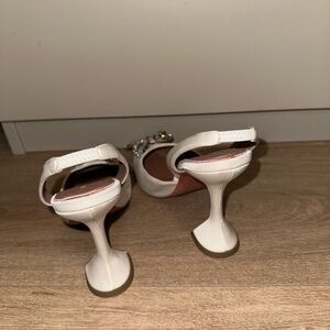 Step out in style with these elegant white slingback heels. Perfect for any occasion, these shoes offer both comfort and sophistication.