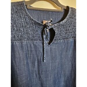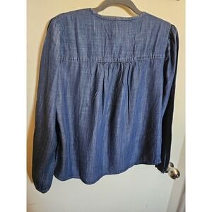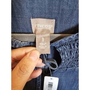 NWT Women's Chico's Chambray Long Sleeve Shirt Denim Smocked