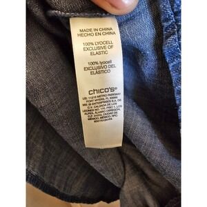 Crafted from lightweight and easy-care lyocell material, this blouse is perfect for travel and casual occasions. The solid blue color and denim fabric type make it a classic addition to your wardrobe. This Chico's size 1 blouse is a US small and fits regular.