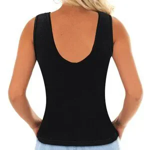 Our tank tops compliment your figure and empower you to take on the world blending nightlife with modesty! With a stylish V-neck in the front and a playful deep back, this black tank top will keep you comfortable in the workplace or while dancing the night away!