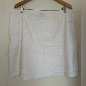 LL Bean Women’s Favorite Fit White Eyelet A-Line Skirt Waist Sz 38 Lined Pockets