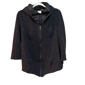 Chicos Zenergy Jacket Womens 0 Black Hooded Quilted Puffer Mid Length Zip Front