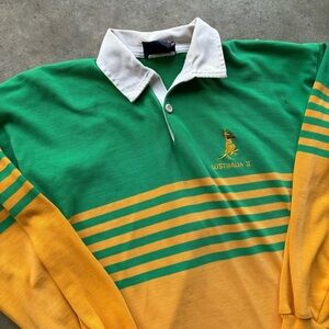 Celebrate your style with this Australia-themed polo shirt in vibrant green and gold. Perfect for casual outings.